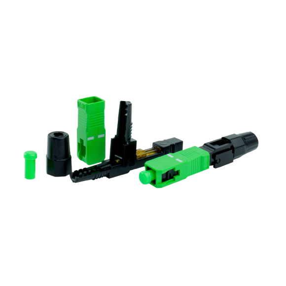 Conector de engate rápido de campo reutilizável do tipo SC/APC ROSCA, utilizado para conectar a ponta do cabo DROP a um sistema óptico compatível com conectores do tipo SC/APC.